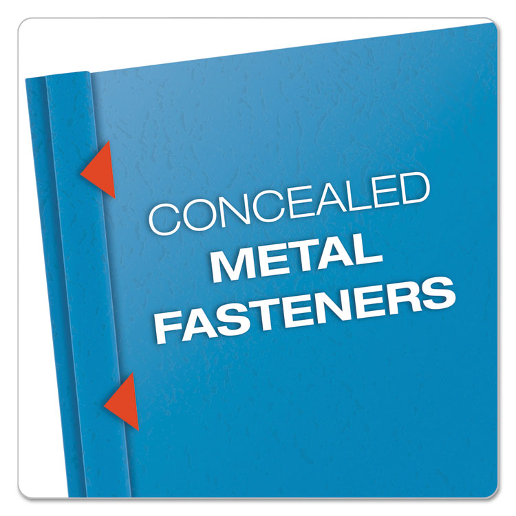 Clear view draws the reader in. First page can include report name and customized graphics. Standard-grade leatherette embossed back cover. Front Cover Color(s): Clear; Color Family: Clear; Back Cover Color(s): Light Blue; Sheet Size: 8.5 x 11.