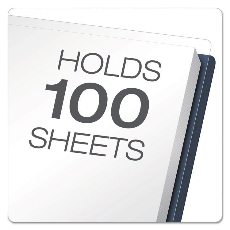 Clear view draws the reader in. First page can include report name and customized graphics. Standard-grade leatherette embossed back cover. Front Cover Color(s): Clear; Color Family: Clear; Back Cover Color(s): Dark Blue; Sheet Size: 8.5 x 11.