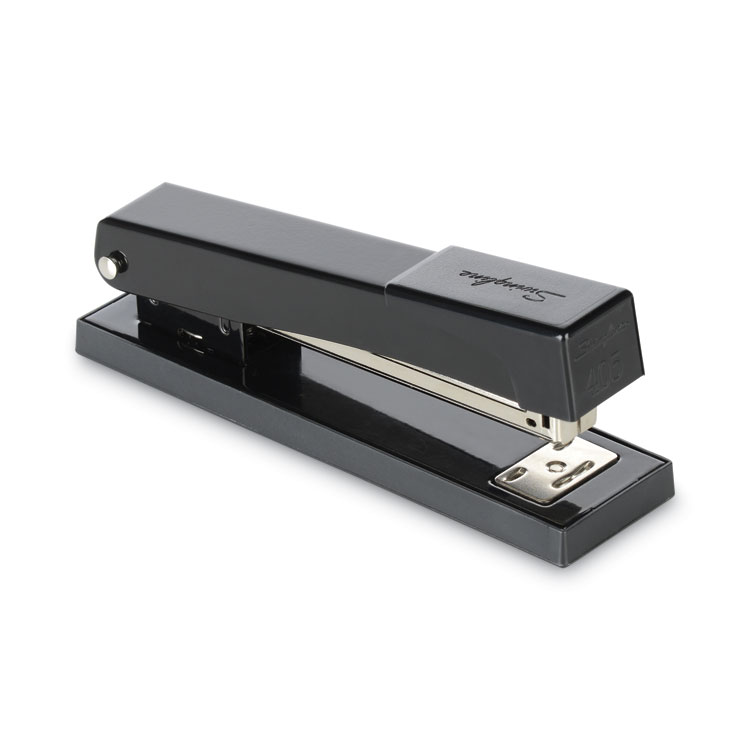 Metal construction guarantees reliable performance. The classic design of this stapler makes both desktop and handheld stapling comfortable. Full rubber slipper on stapler base prevents skidding on any surface. Staples, tacks and pins-pull open to post items to tackable surfaces and reverse the anvil to instantly create a temporary pin staple. High Capacity Stapling: No; Flat Clinch Plate: No; Tacking: Yes; Staple Capacity: Full Strip (210 Staples).