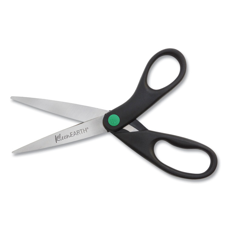 Feature stainless steel blades. These lightweight scissors are capable of cleanly cutting through a wide range of materials. Made for both right or left hand use. Westcott uses recycled material in the designs of KleenEarth products and packaging. The same quality standards are used in all their products whether using new or recycled materials, so you can be sure this KleenEarth product will live up to your expectations. Cutting Tool Style: General Purpose; Scissor Tip Type: Pointed; Scissors Cut Length: 3.25"; Overall Length: 8".