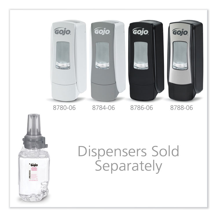 This GOJO Clear and Mild Foam Handwash has no added fragrance, so it doesn't bother employees or customers with sensitive noses. Made without dye, this soap lets users avoid the possibility of stained clothes as they lather their hands, and it could help prevent allergic reactions. Designed to accommodate a wide range of preferences, this soap fosters good hand hygiene. Containing moisturizing ingredients, this soap leaves people with soft hands, encouraging them to continue washing their hands in the future. For Use With GOJO ADX-7™ Dispenser (sold separately). Soap Type: Foam; Volume Capacity: 700 mL; Scent: Fragrance-Free; Personal Soaps Application: Hand.